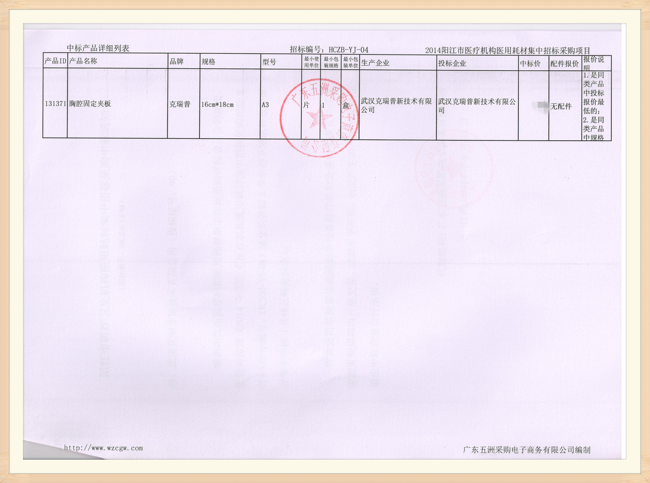 【廣東省2014陽江市醫(yī)療機構(gòu)醫(yī)用耗材集中招標采購項目】東科圣康品牌胸腔固定夾板在2014年陽江市醫(yī)用耗材招標采購項目中我們這款產(chǎn)品已成功中標,東科圣康胸腔固定夾板是一款由高分子納米材料、記憶鋁合金板、多頭肋骨固定帶組成,具有結(jié)構(gòu)好,重量輕體驗度好,無需加熱,操作簡單方便等特點??捎糜诠强啤⑿赝饪?、急診科等科室的胸背部閉合性、開放性肋骨骨折的固定復(fù)位等,可良好的運用以及使用。